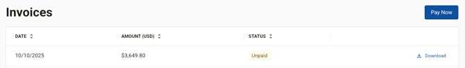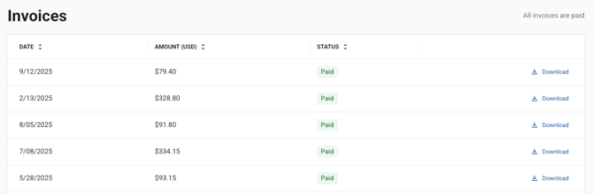 Click the Download button next to any invoice to save a PDF copy for your records.